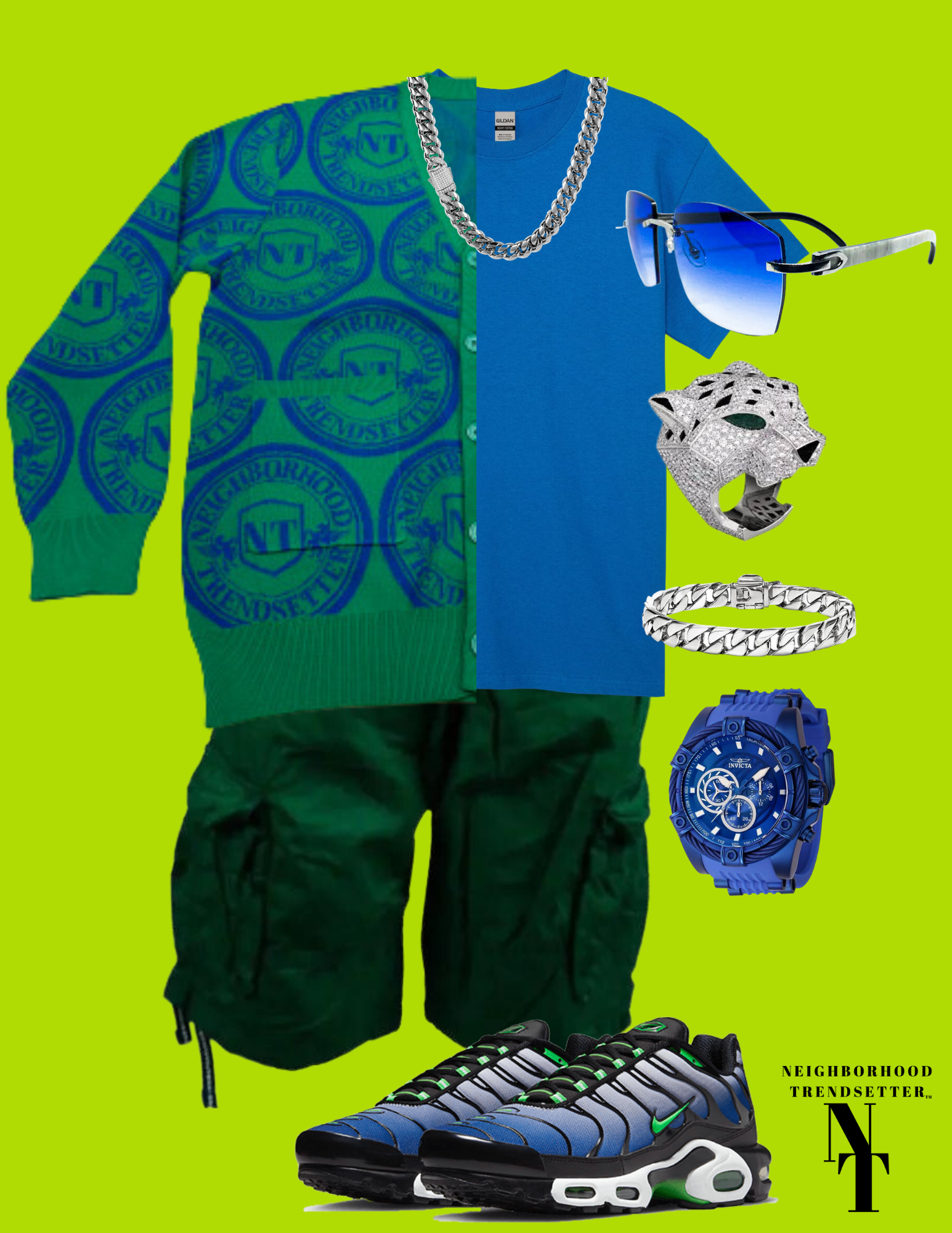 Just like last season only doper. This premium quality cardigan swester is just what your wardrobe needs to go to the next level! Kelly green background with royal blue logos through the design of the swester make this the perfect color combo for those who know how to put it on!